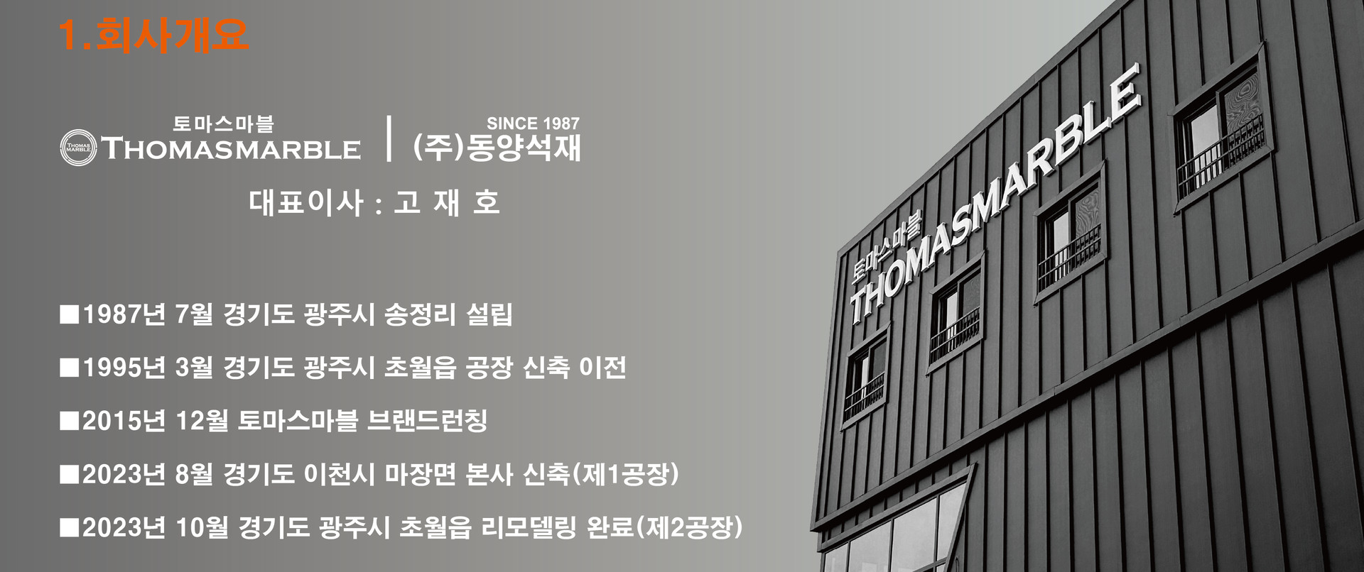 토마스마블은 1987년 설립된 (주)동양석재의 시대 흐름에